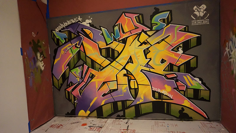 Stevenson Alley Mural (character). Stevenson Alley. San Francisco, Ca. 14’x45’. October 2014. The manager for Blick's Art Store in downtown San Francisco knew one of his employees was a graffiti artist and spoke about a possible TWS reunion or Pop Up Gallery Show inside Blick's. So the manager proceeded to erase a portion of the back alley of where Blick's business was located. When we showed up the wall was already buffed and asked us to paint the wall. So not only were we to have an art show but also a graffiti piece in the back to showcase our work. The wall and show was worked in as partnership with Pacific Gas and Electric Company and Blick's Art Store. YouTube Video Clip